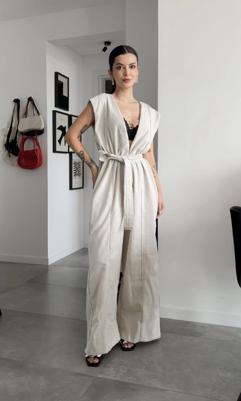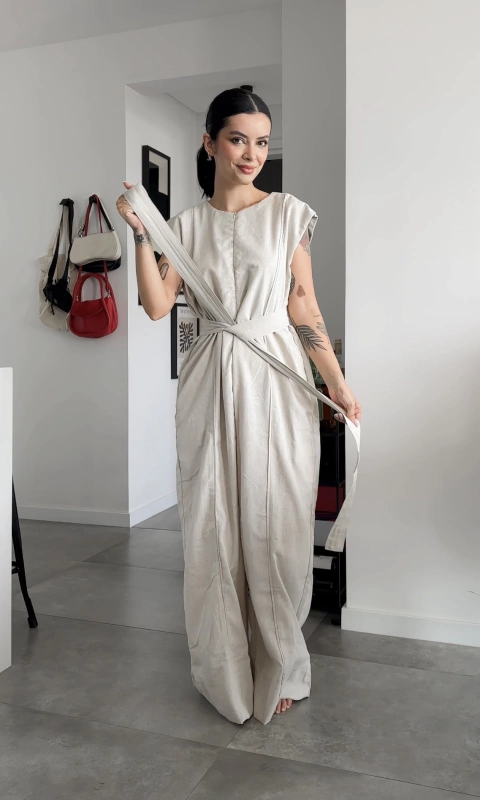 Confeccionado en una mezcla de 55% lino y 45% viscosa, este modelo ofrece una combinación ideal de frescura, suavidad y ligereza. Su corte holgado proporciona comodidad y libertad de movimiento, mientras que los bolsillos añaden un toque práctico y funcional. La cremallera frontal y la correa de lazo suelta le brindan un estilo moderno y relajado, perfecto para cualquier ocasión.