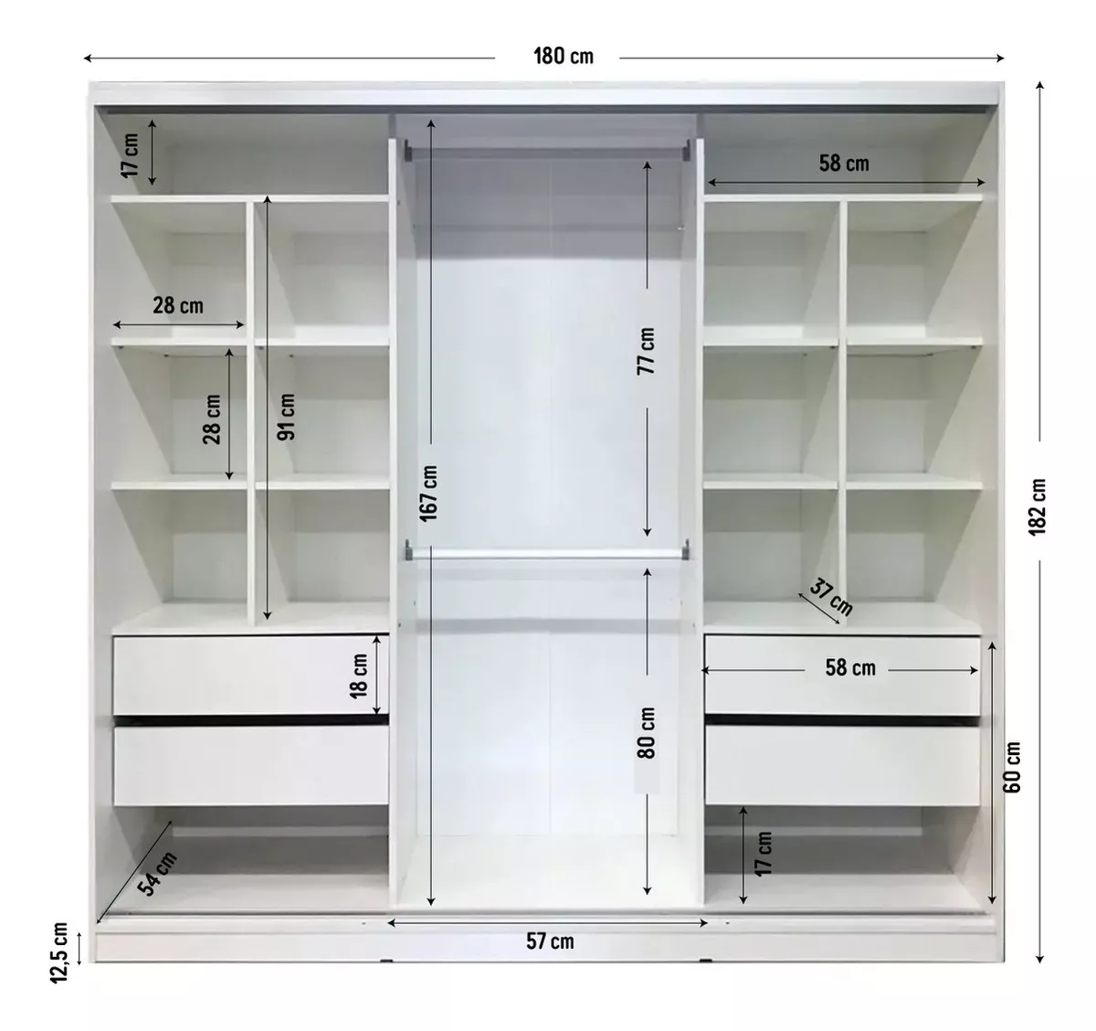 Placard Puertas Corredizas Diseños Modernos blanco 180 X 56 X 180 cm cubos moderno 8180